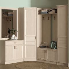 Серия включает все необходимые предметы мебели для прихожей: 1-, 2- дверные и угловой шкафы для одежды, тумба с панелью с крючками и тумба с зеркалом.