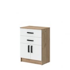 Классический, контрастный комод включает в себя два выдвижных ящика и вместительное отделение за двумя распашными дверцами.