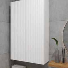 Белый шкаф с рифлёным фасадом будет отлично и стильно смотреться как в ванной, так и в туалете.